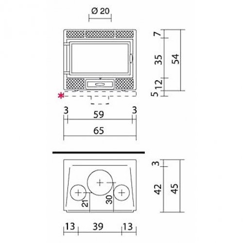 • Внутренние размеры топки, см 55х28х29h