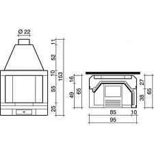 Дровяная печь с корпусом из стали, внутренняя отделка из огнеупорного материала. Большое жаропрочное стекло. Экономичный равход дров. Система "чистое стекло". Дожиг дымовых газов. Камин так же доступен в "настенном" исполнении.